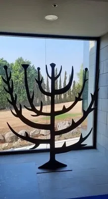 Вообще, в здании много символики. На одном из подоконников в виде меноры изображение Неопалимой купины — куста, из которого Всевышний говорил с Моисеем. Это символ иудаизма, из которого выросли религии христианства и ислама.